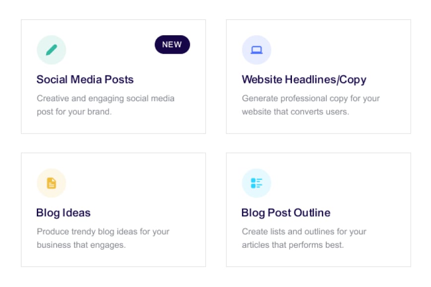 Simply choose a template from available list to write content for blog posts, landing page, website content etc.